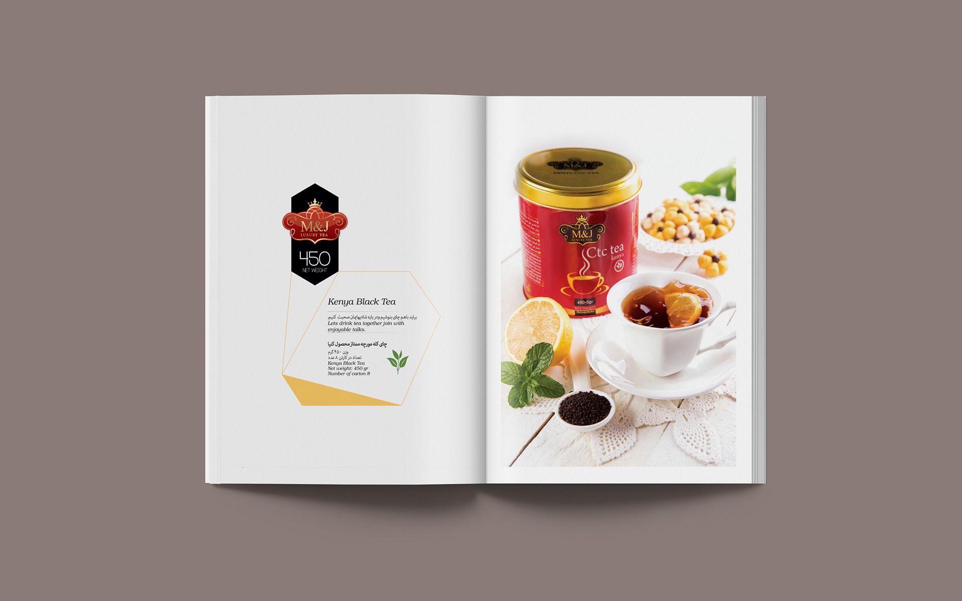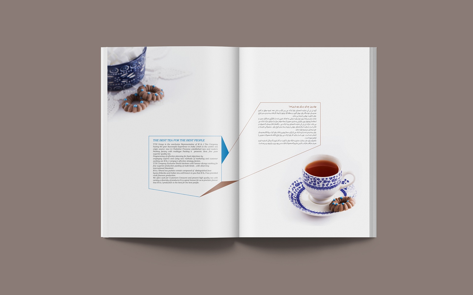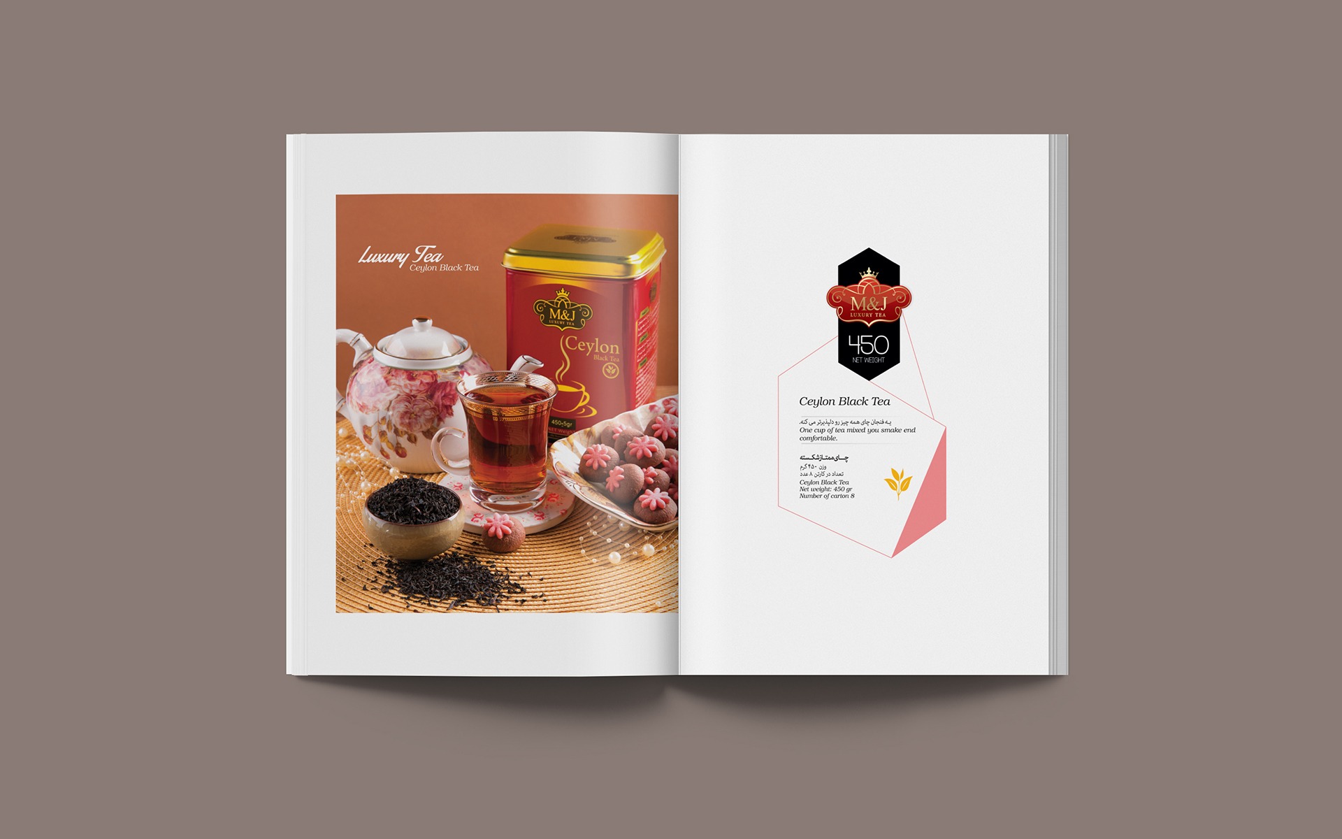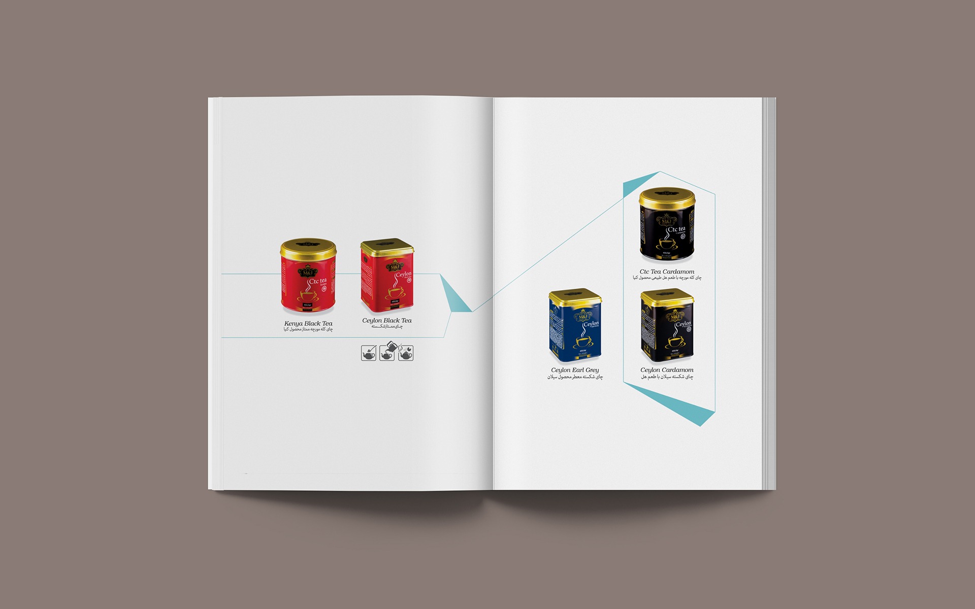 M&G brand produces tea from the best gardens of Kenya, Sri Lanka and India, which has provided a variety of products for a variety of tastes. Because this brand operates in the line of luxury products. The customer asked us to show the aristocratic styles, splendor, authority and luxury of the brand. In designing this catalog, we have professionally photographed all the products, special accessories and beautiful layouts for each frame, and finally the photos and graphic design have been combined.