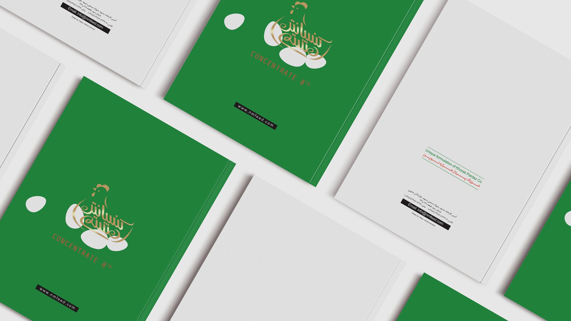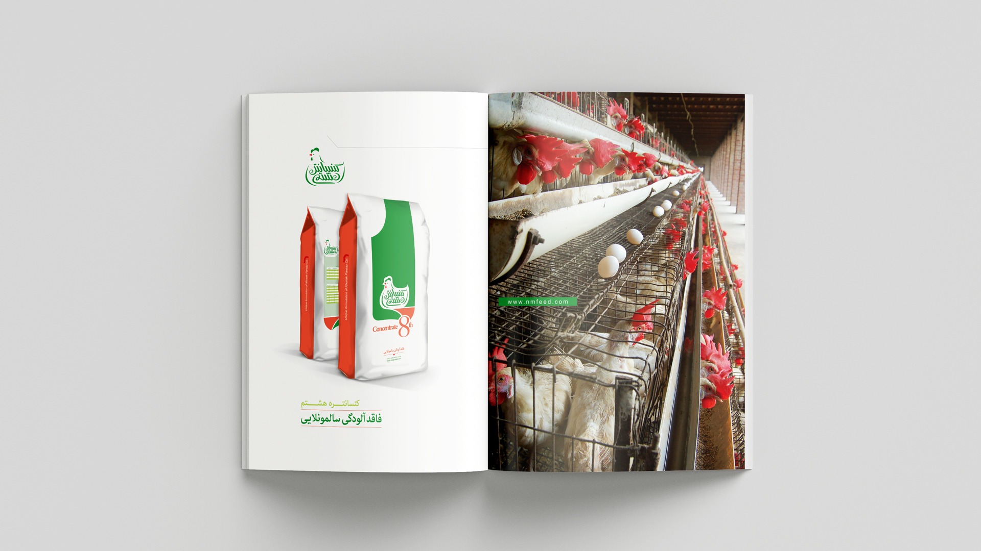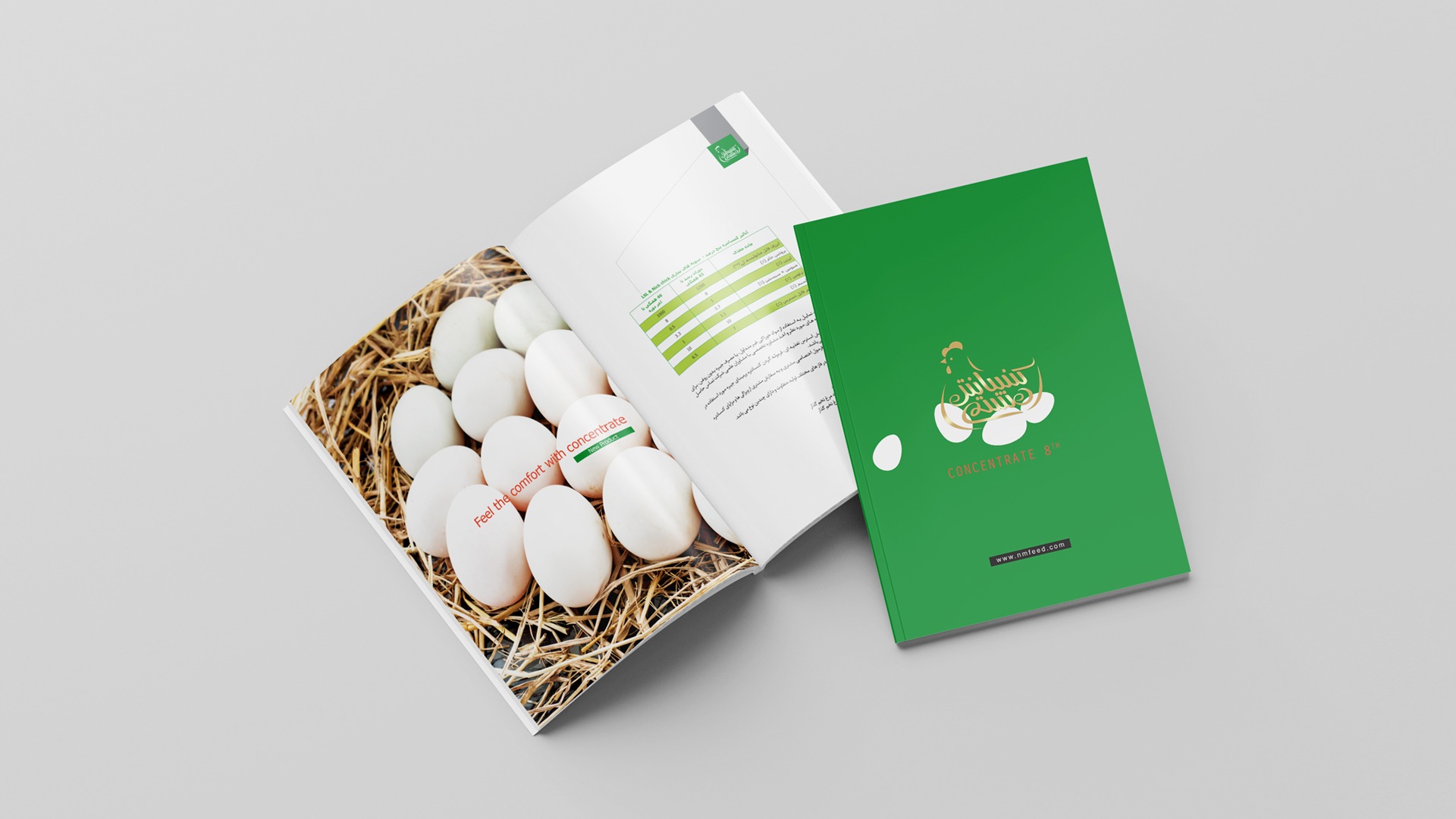 Concentrate 8 is a product that provides chicken nutrients in the form of pellets. In designing this catalog, we decided that the catalog should not have a normal design and should be accompanied by a bit of mischief. Since this product is related to chicken and the chicken beak is a part that the bird uses to pick up food and eat, and it is completely related to the subject of the catalog which is chicken food, we were inspired by the idea of the beak. Therefore, we used the origami method to make the beak, which opens and closes as soon as the catalog is opened by the user. In the following pages, the product is introduced.