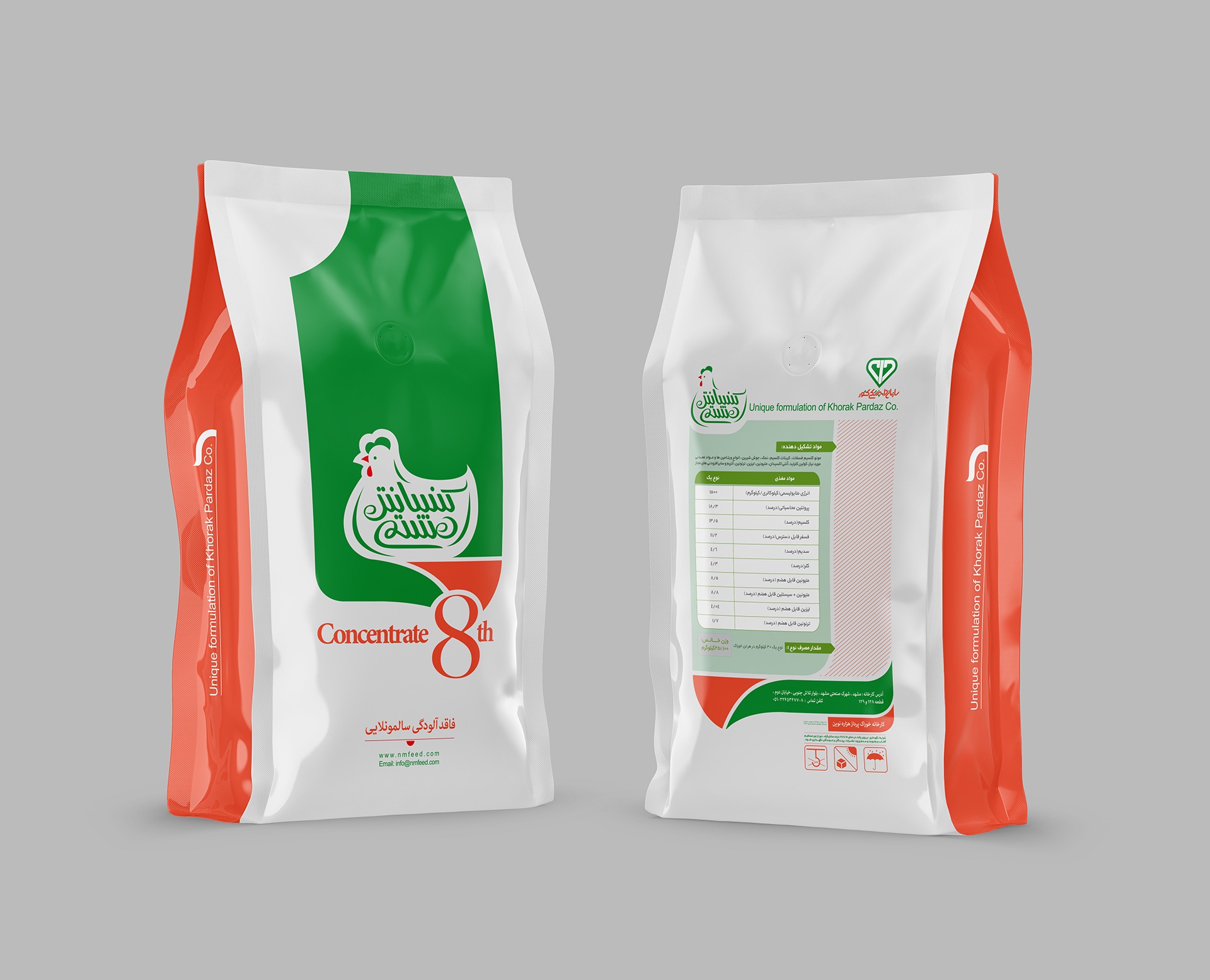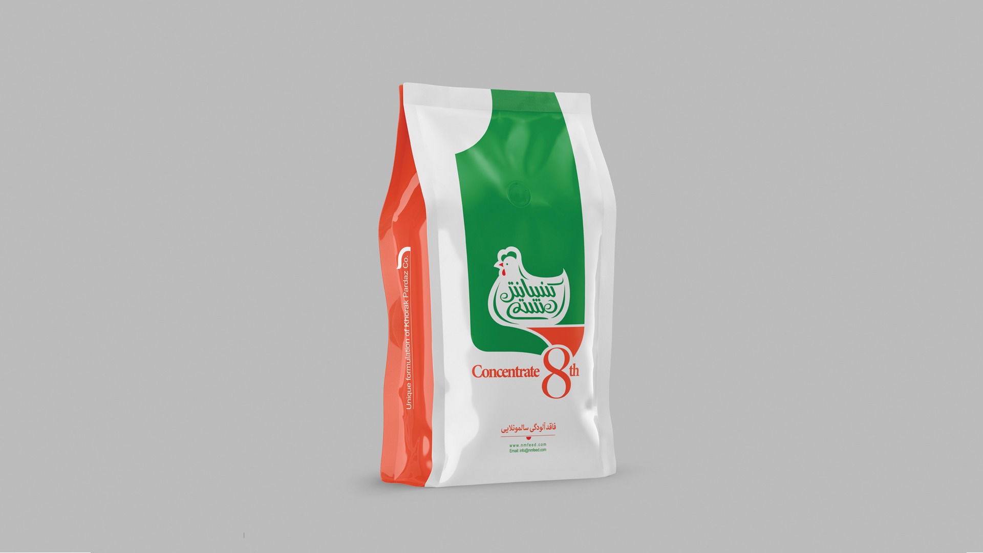 Holders of Eighth Concentrate products come to us to create an identity for their product. This product kills chicken nutrients. From the beginning, a text symbol has been designed for this product and shows the green, orange and white color palette according to the plant origin of the product. This product is produced by producing cellophane in paper packaging. The purpose of designing the identity and packaging of this product is a unique modern design, yet beautiful and far from any other kind of complex.
