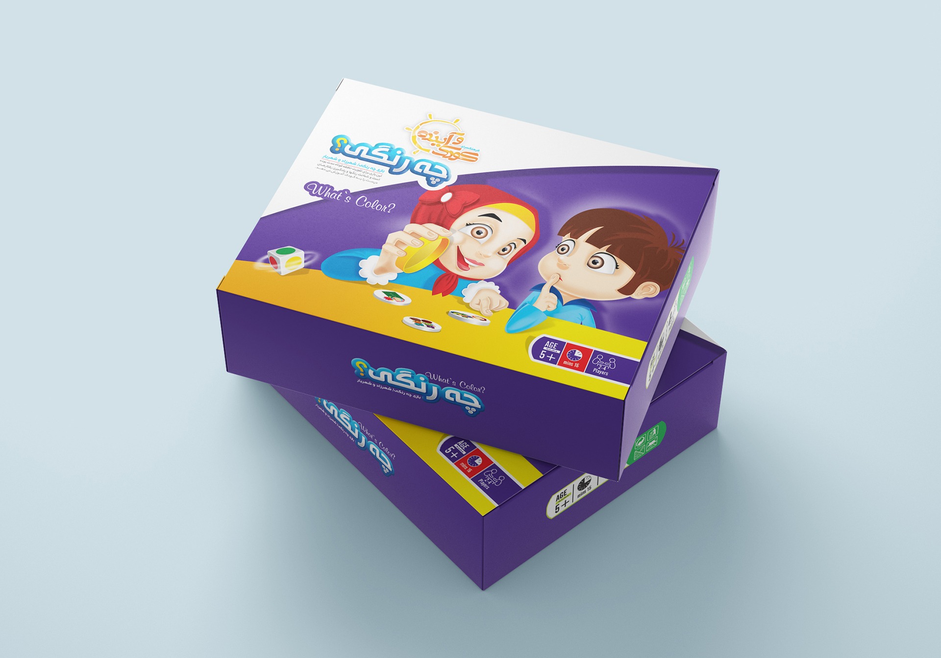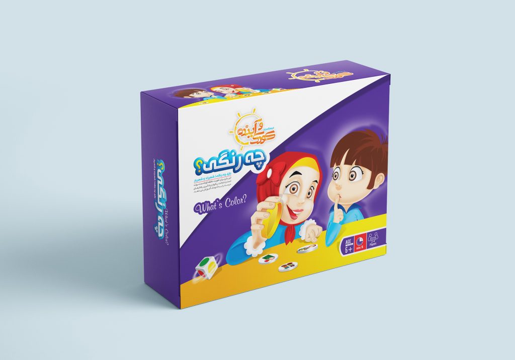 What color game has been commissioned by Mashhad Municipality, Children and Future Cultural Center. This game is designed for children over 5 years old and is to strengthen children’s short-term memory and teach them group activities. The Children and the Future series, which is an educational and entertainment environment for children, has two muskets for boys and girls named Shahrzad and Shahriyar, and these muskets have been used in different platforms in different ways for advertising, so in designing this game we We decided to use the muskets to draw them while playing, first the design work and then the digital technique. The colors used in the packaging design are at the same time lively and have a lot of beauty. The components of the game are a number of pans, dice and cards that we have used in the packaging design to better understand the game.
